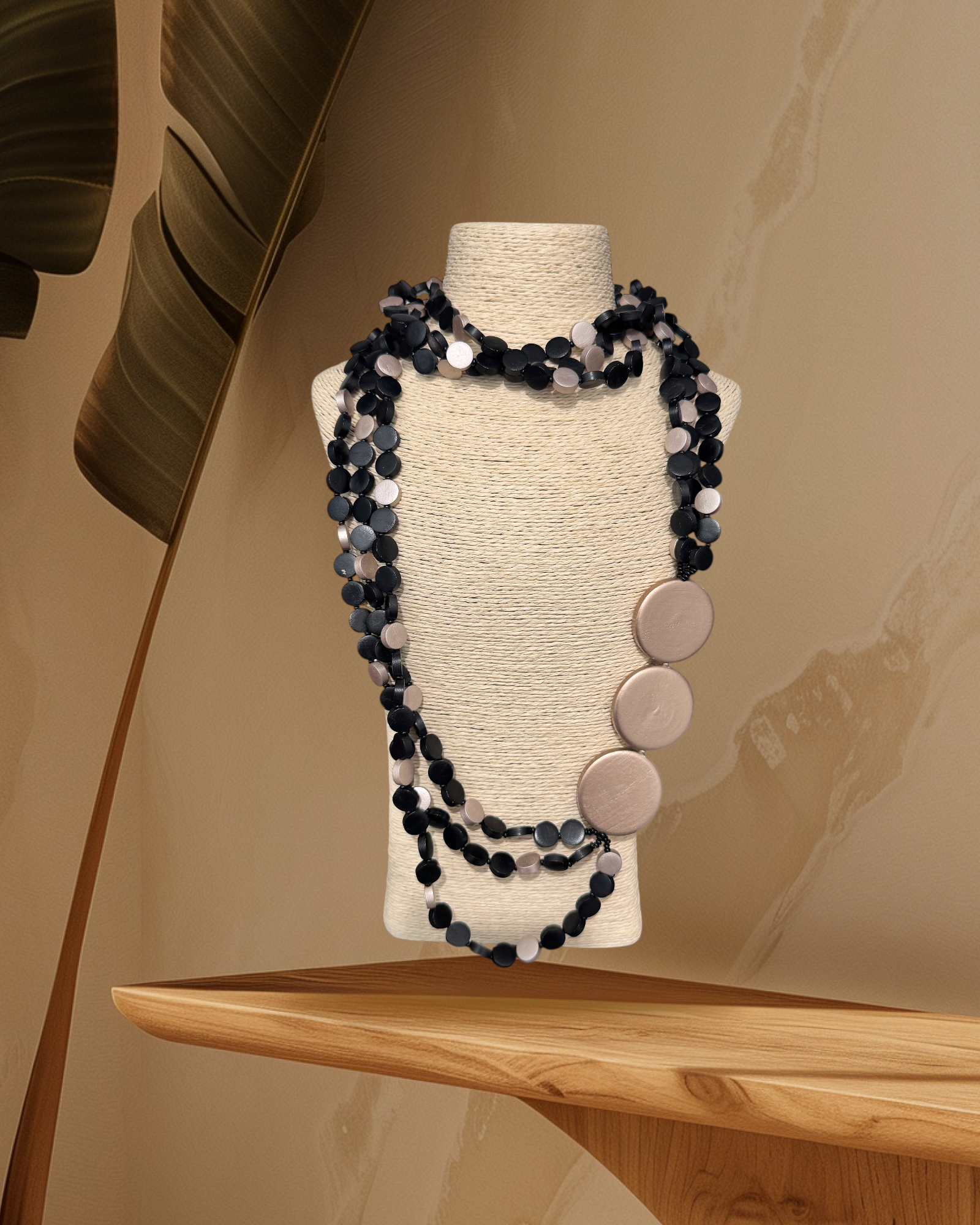 Collar largo con ruedas en color negro